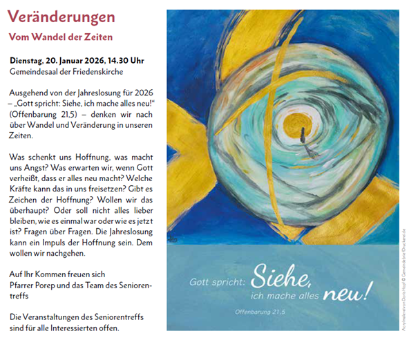 Dies gilt dann ab 1. März auch für die Zeit der Vakanz der 1. Pfarrstelle (voraussichtlich bis 1.9.2026). Pfarrer Spingler ist ihr Ansprechpartner für Seelsorge und Pfarramtsangelegenheiten.